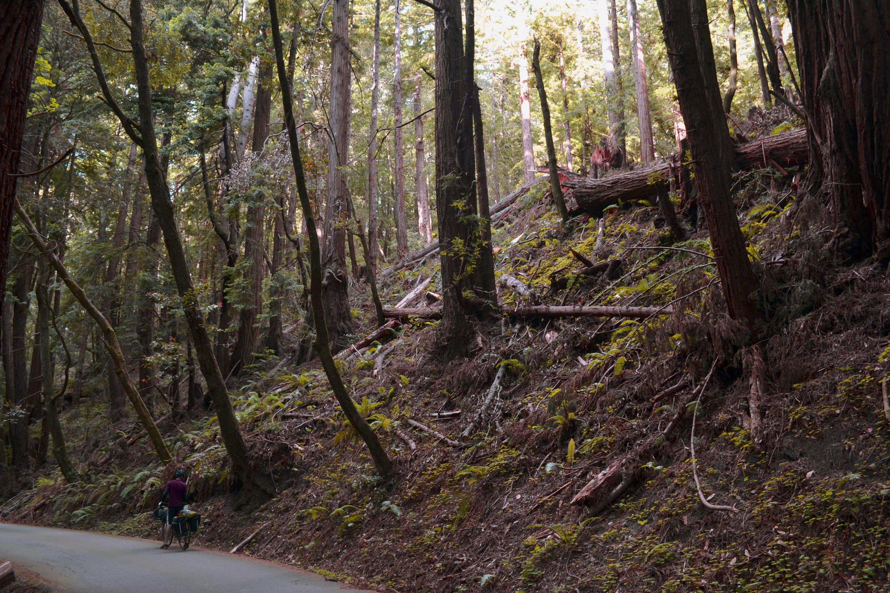 Let me just say, Big Sur will knock your socks off and leave you breathless – from both the views and the climbs. I’d been looking forward to Pfeiffer since I pulled out of San Fran earlier that week, and it didn’t disappoint. Our little tent found a spot nestled right between a clear, gurgling creek and a grove of redwoods. There was a bit more traffic in the tourist area, but I managed to ditch my panniers and head off-road to go rock hopping in the creek at sunset.